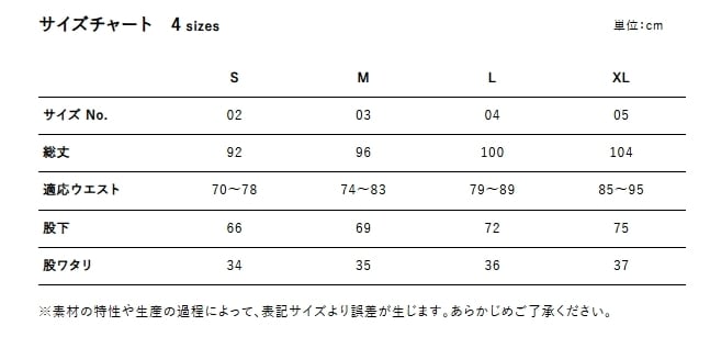 ※脇ポケットあり、脇縫いあり、ウエスト丸ひもあり(内側)、ヒップポケットなし